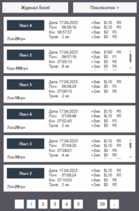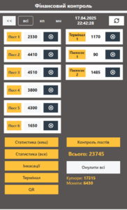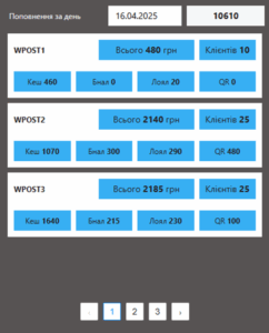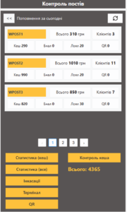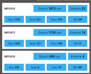 На кожній панелі відображається інформація про поповнення по кожному посту, аксесуарам та терміналу (для терміналу тільки кеш):