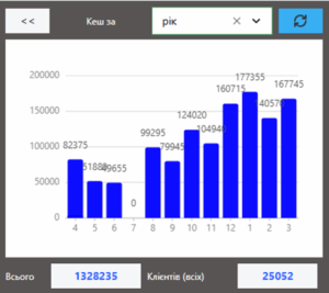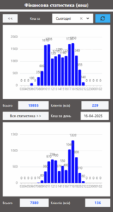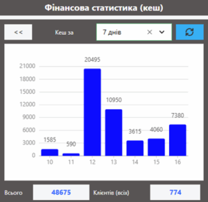 Сторінка фінансова статистика (кеш) показує статистику поповнення готівкою пости, аксесуари та термінал (рис.1). На сторінці відображаються дві панелі: